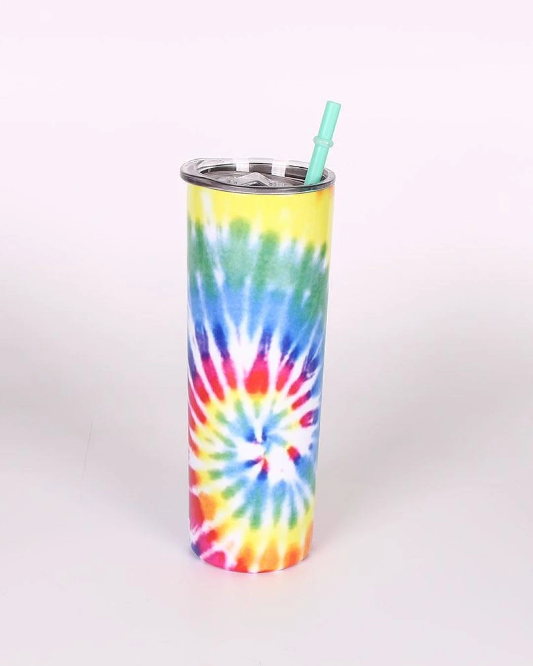 Keep your drinks hot or cold for hours with our new stylish stainless steel 20 oz Tie Dye Tumbler. They are great for traveling, school, work or just hanging out at home. They have double insulated walls and also come with a lid that is vacuum sealed to prevent those spills. A plastic straw is also included.