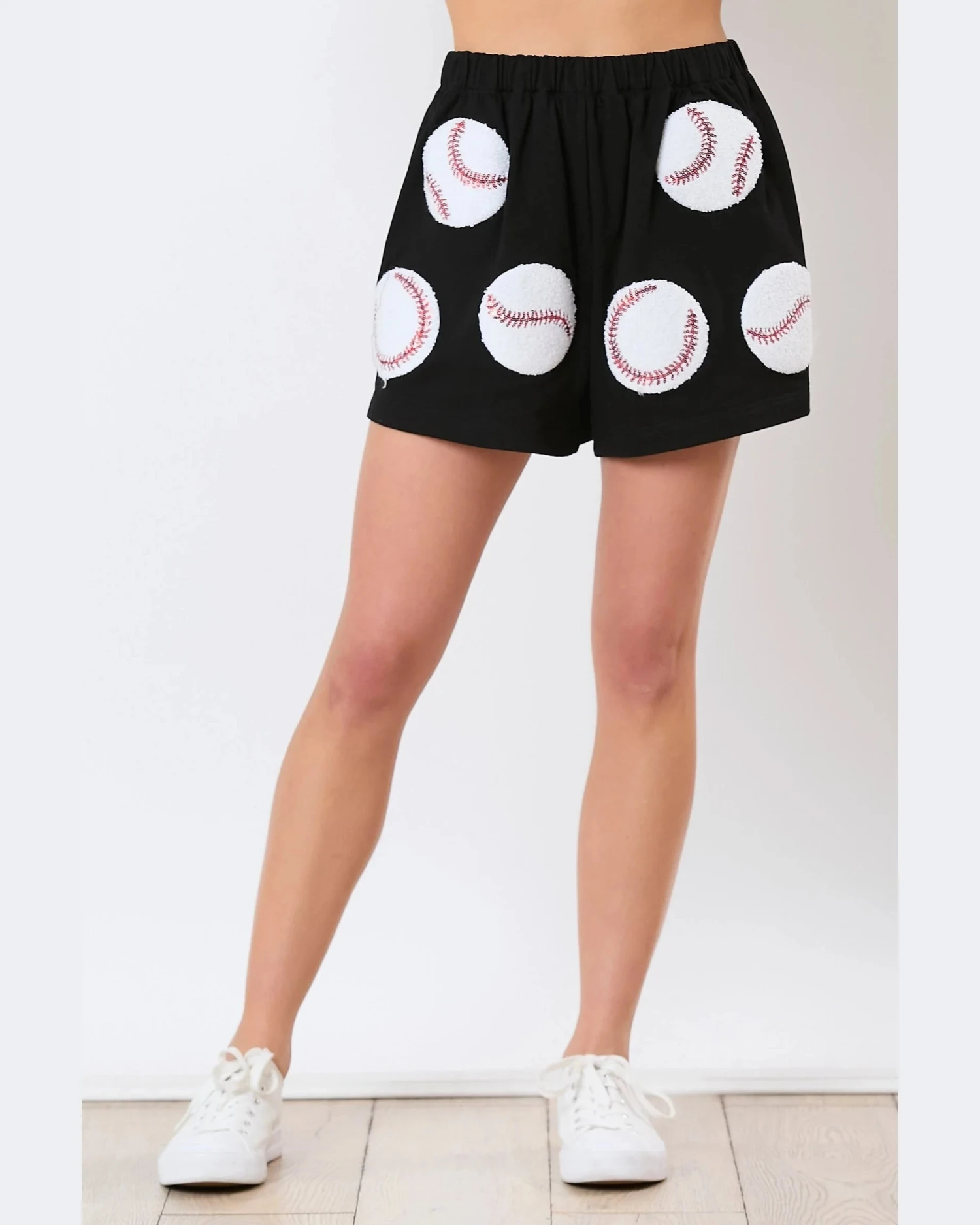 These Baseball Shorts are a home run! With a touch of sequin detail, you’ll shine on and off the field. Comfortable and stylish – perfect for all your sports and leisure needs.