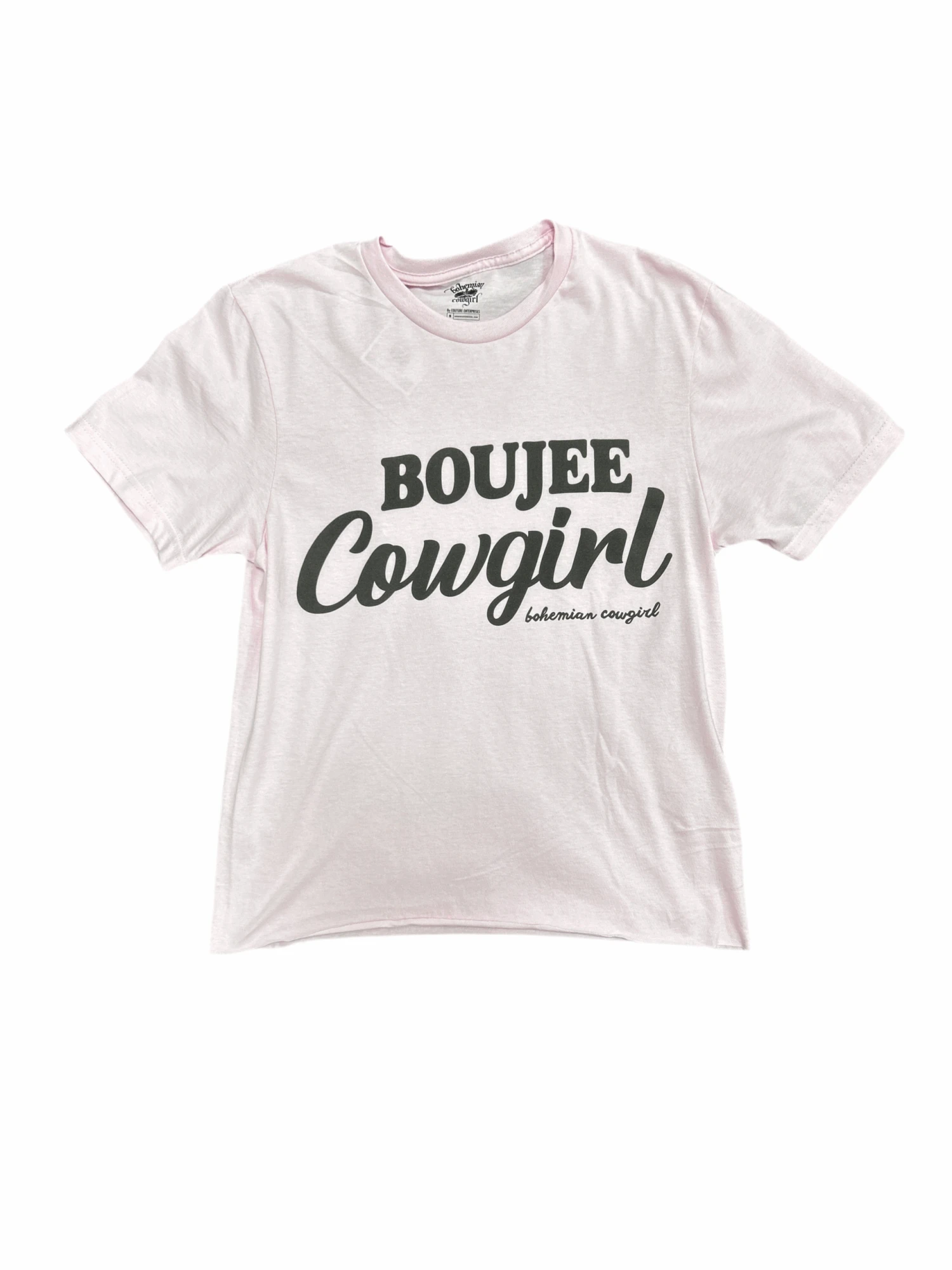 Saddle up in style with our Boujee Cowgirl Tee! This playful tee features bold “Boujee Cowgirl” wording that is sure to turn heads. Made with high-quality fabric, this tee is both comfortable and stylish, making it the perfect addition to any cowgirl’s wardrobe. Giddy up and get yours today! Yee-haw!