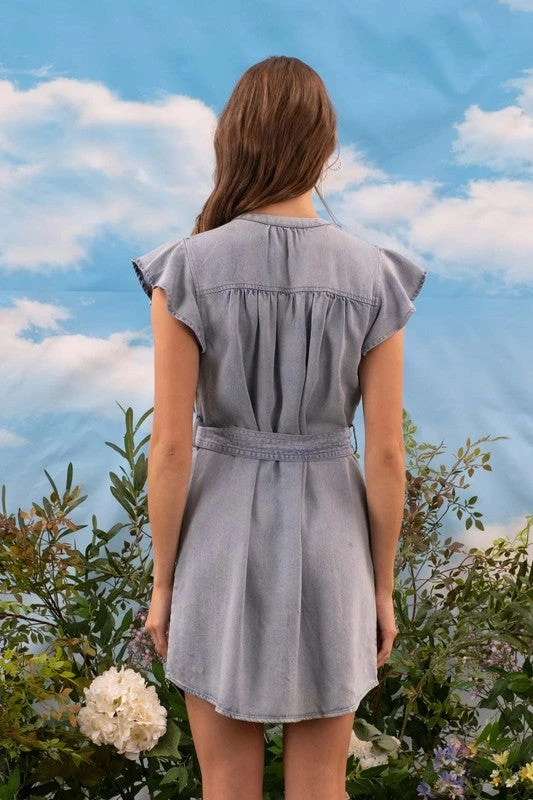 This Button Down Dress features a belted design and yoke detail, adding a touch of elegance and sophistication. The belt loops provide a secure fit while the mini length creates a stylish look. Perfect for any occasion, this dress is a must-have in your wardrobe.