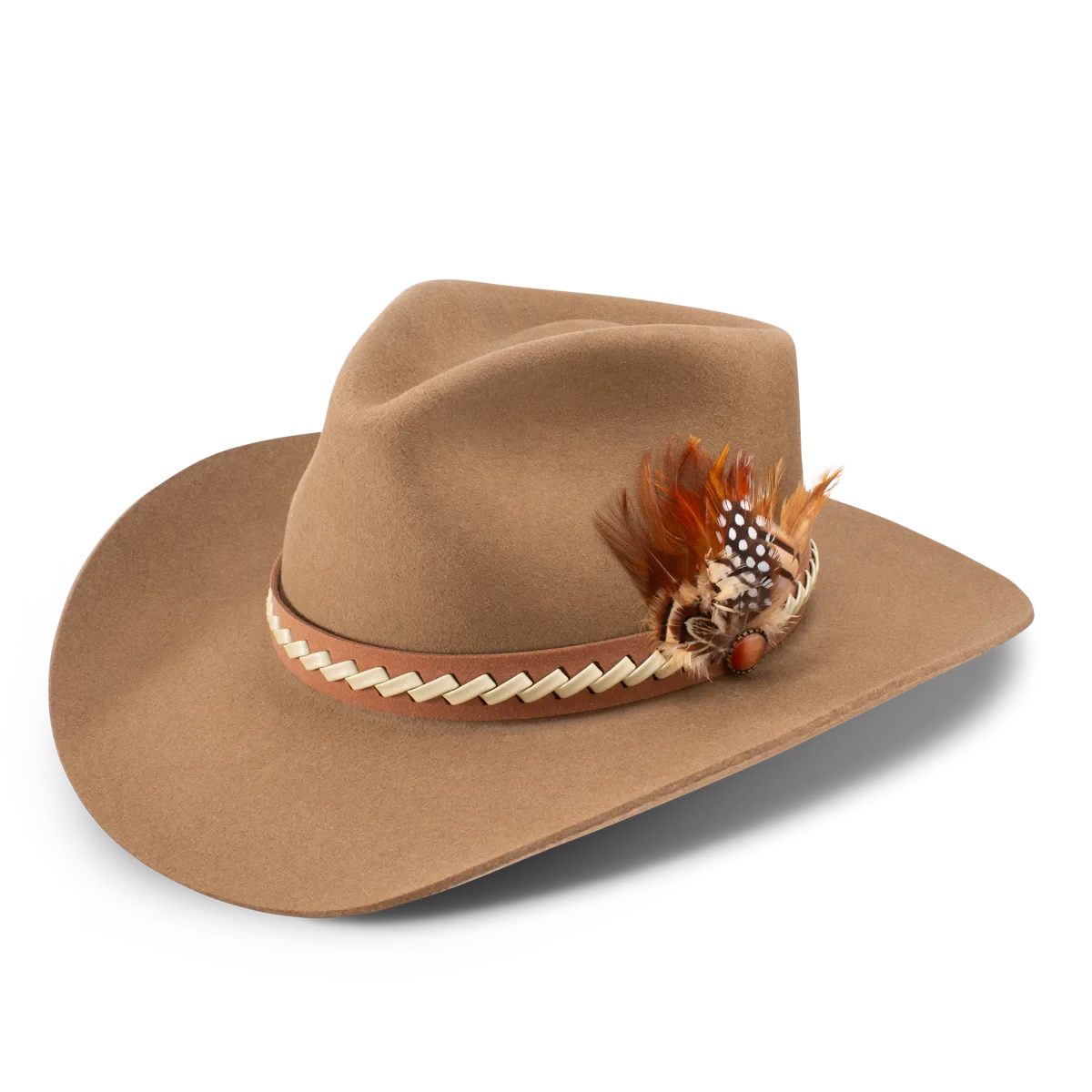 This Charlie 1 Horse Road Runner Wool Hat, designed by Lainey Wilson, features a woven leather hatband. Crafted with high-quality wool, this stylish hat is both durable and fashionable. Perfect for any occasion, this hat adds a touch of Western charm to any outfit.