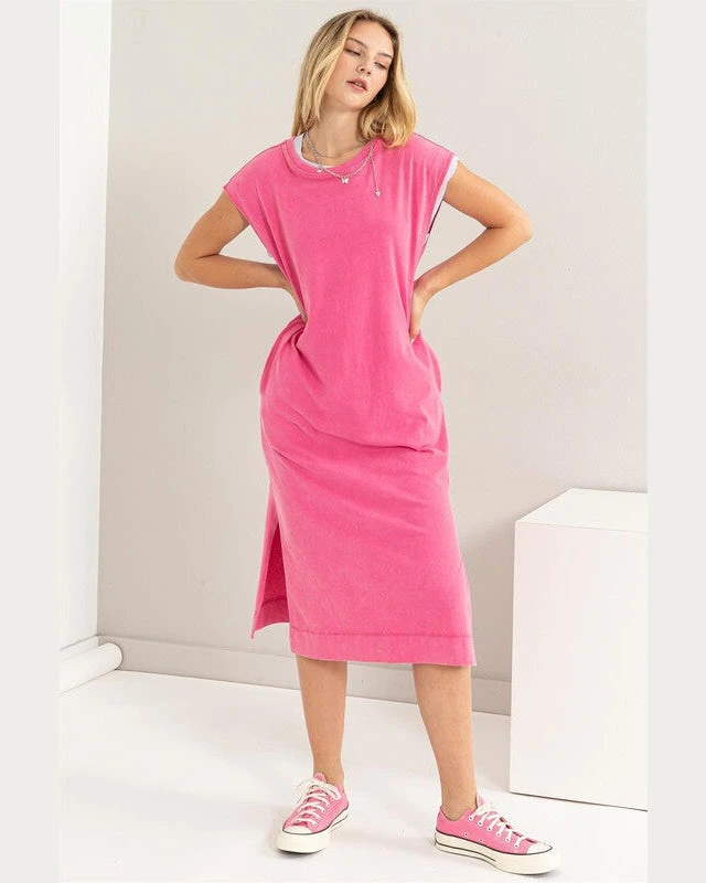 Live your best casual life in our Comfy Sleeveless Midi Dress! The wide cut design and relaxed silhouette allow for ultimate comfort, while side pockets add a practical touch. Perfect for any occasion, this dress will be your new go-to.