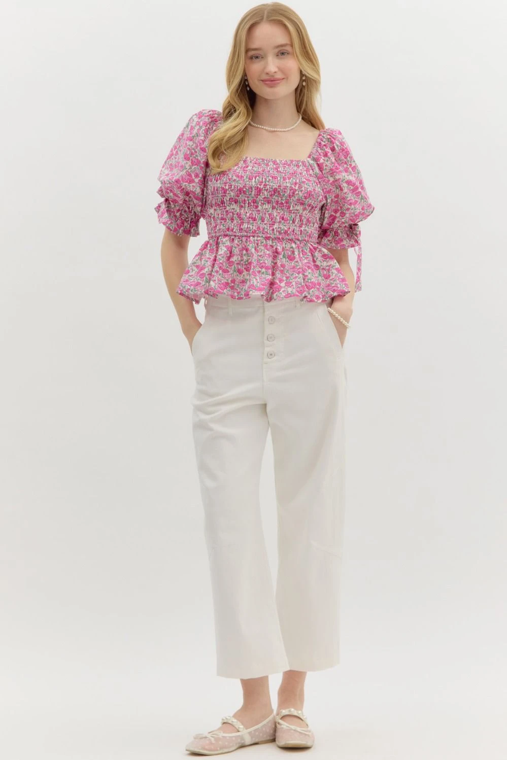 Get ready to bloom in style with our Ditsy Floral Smocked Top! Featuring trendy bubble sleeves with cute bow accents and a playful ruffled hem, this top is perfect for any occasion. Embrace your fun and flirty side with this must-have piece!