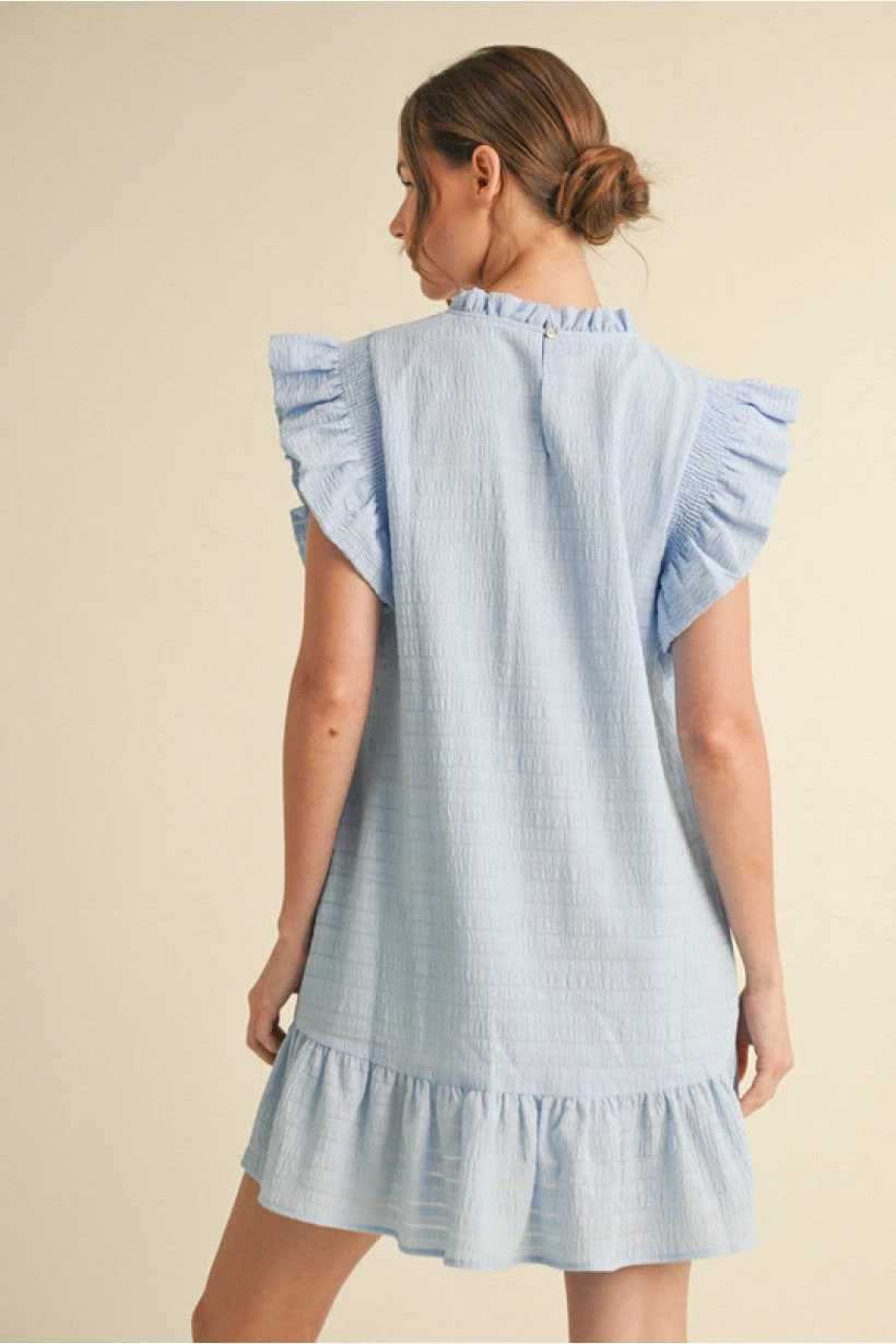Slip into our Embroidered Floral Dress for a touch of whimsy and texture. With a frilled neck and intricate embroidered details, this dress will have you twirling with joy. Don’t forget the ruffly hemline and shoulders for that extra playful touch. A must-have for any wardrobe!