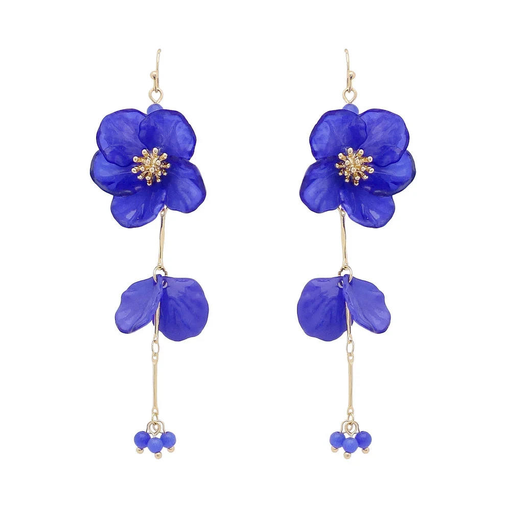 Enhance your style with our elegant Flower Drop Earrings. Crafted with high-quality acrylic, these earrings are lightweight and comfortable to wear. Each pair features a bright beautiful flower drop design, adding a touch of sophistication to any outfit. Elevate your look today with these stunning statement earrings.