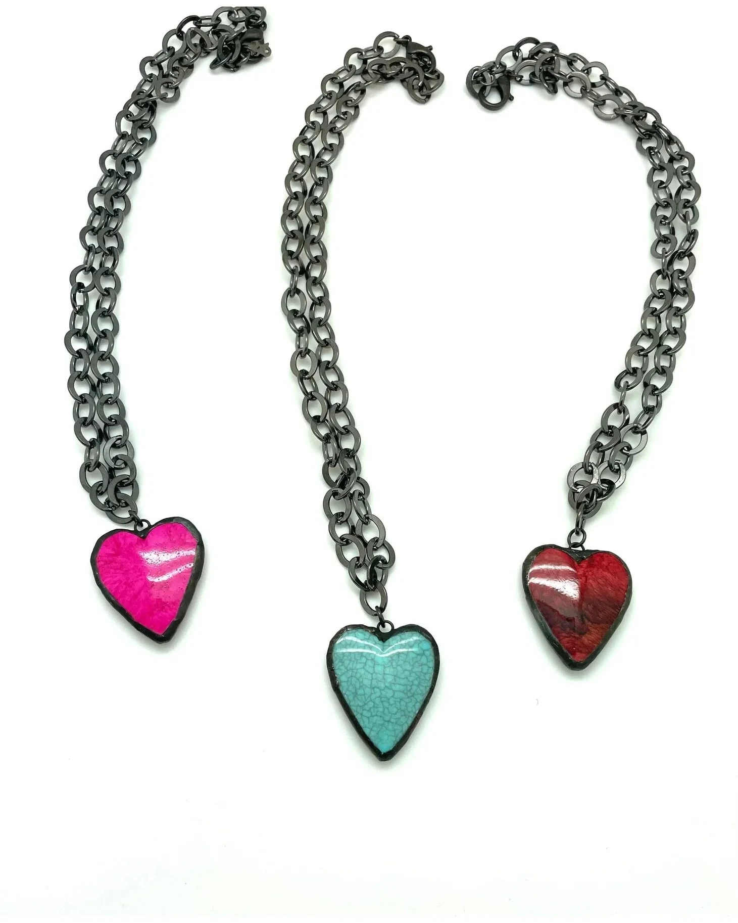 This gunmetal chain Heart Necklace features a vibrant heart pendant. Perfect for adding a touch of elegance and flair to any outfit, this necklace is a must-have for any jewelry collection. The unique design and high-quality materials make it a durable and eye-catching accessory.