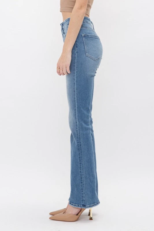 Introducing your new go-to Denim: the High Rise Bootcut Jeans! With a comfy yet stylish high-rise waist and flattering bootcut leg, these jeans fit like a glove. Made with a blend of cotton, rayon, poly, and span for the perfect fit.