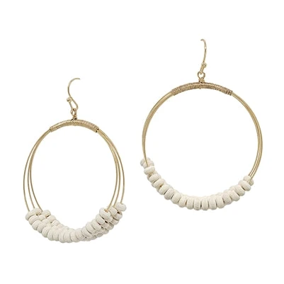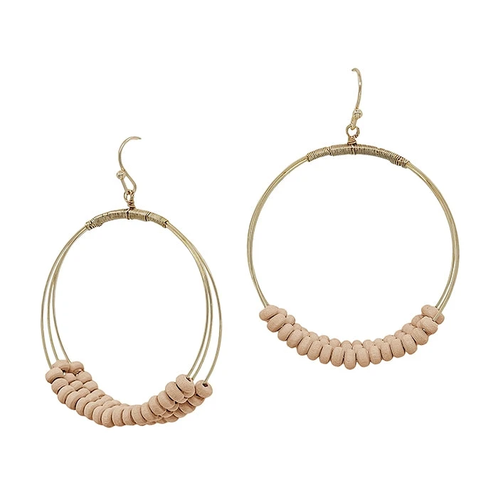No jewelry collection is complete without a super-chic earring and our Layered Beaded Hoop Earrings are just that! A great hoop earing with layers of wood beads. Goes with almost anything!