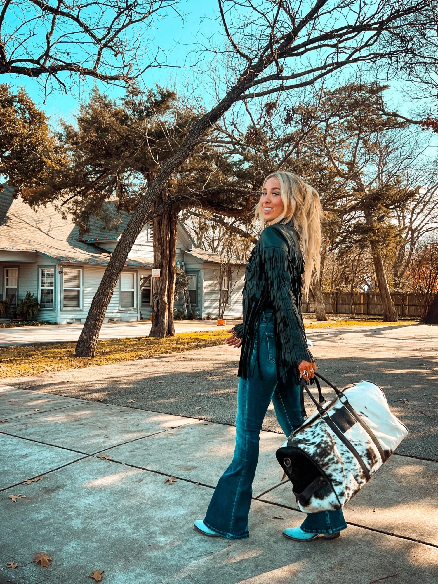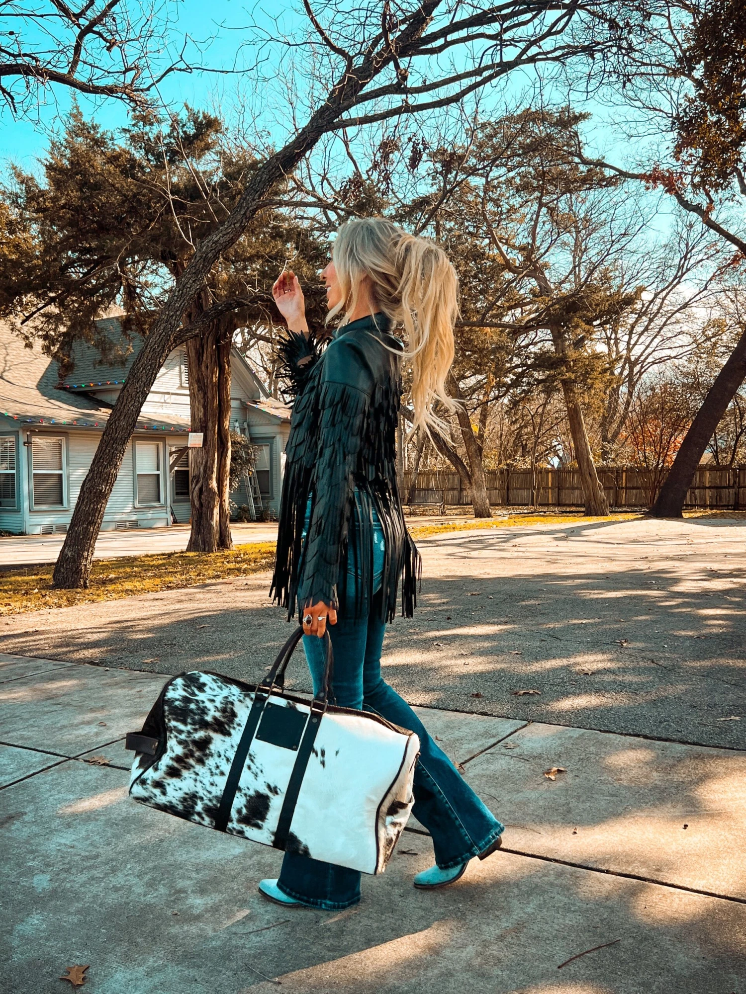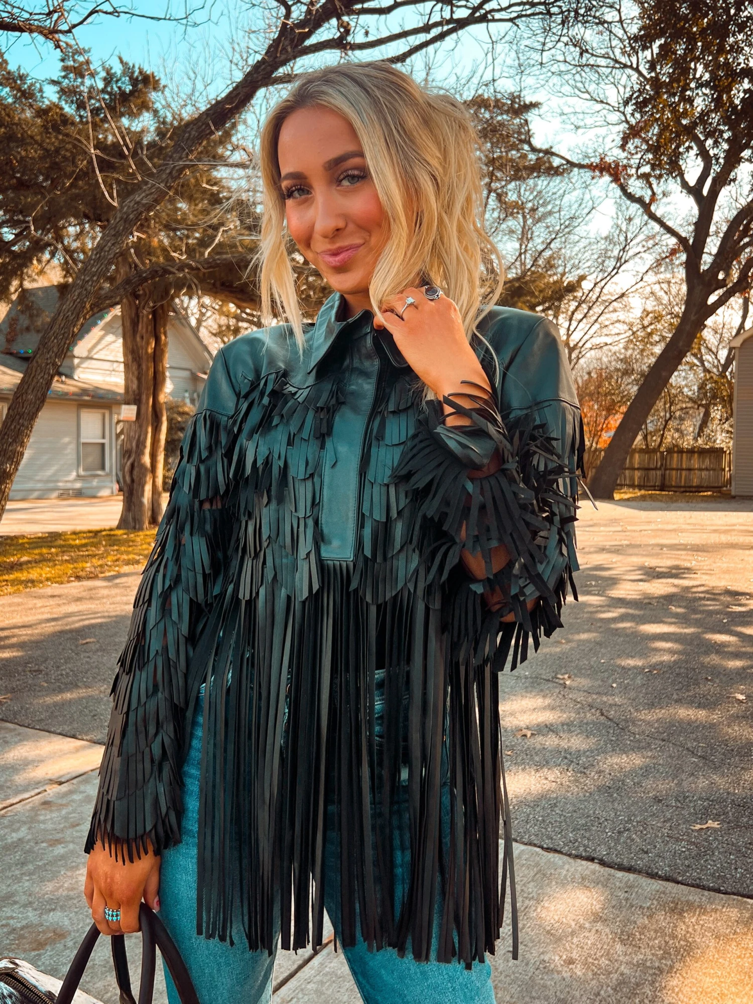 Step into style with this Leather Fringe Shirt. This unique crop leather shirt features a button up design, genuine leather fringe detailing, and a trendy mesh back. It’s the perfect addition to any wardrobe. (Wear it to your next concert or festival for a look that’ll have heads turning!)