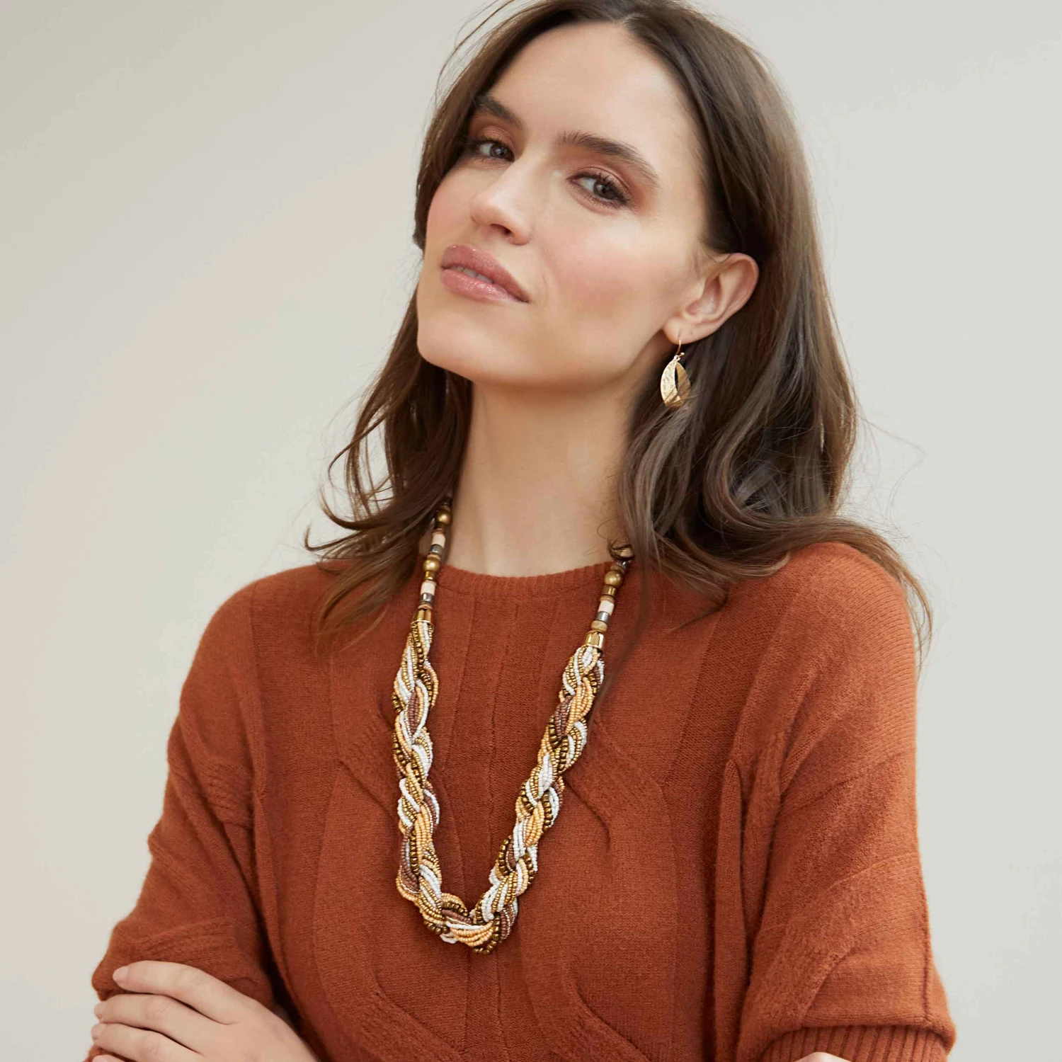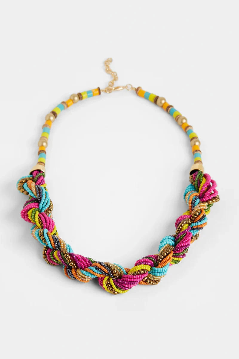 Looking for a unique accessory? Look no further than our Merida Necklace, crafted with a intricate beaded twist pattern for a chic and stylish finish.