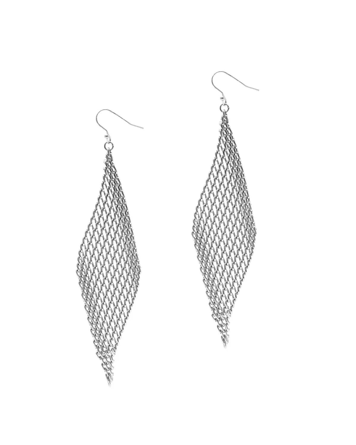 Introducing Mesh Diamond Shape Earrings: mesh like a pro and look glamorous on a (diamond) budget! Add some sparkle to your look with these cool 3″ mesh earrings, perfect for those who want to stand out in a crowd!