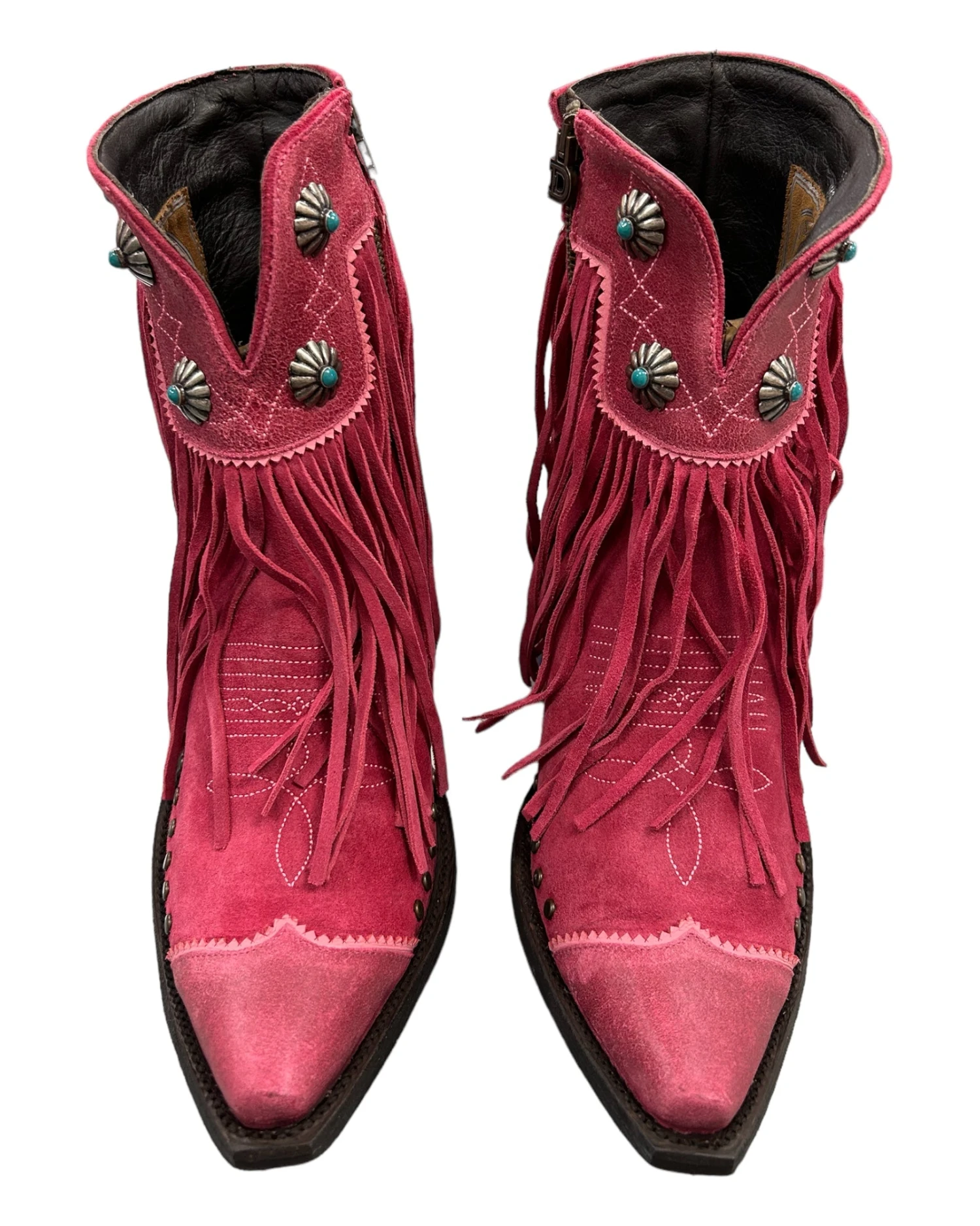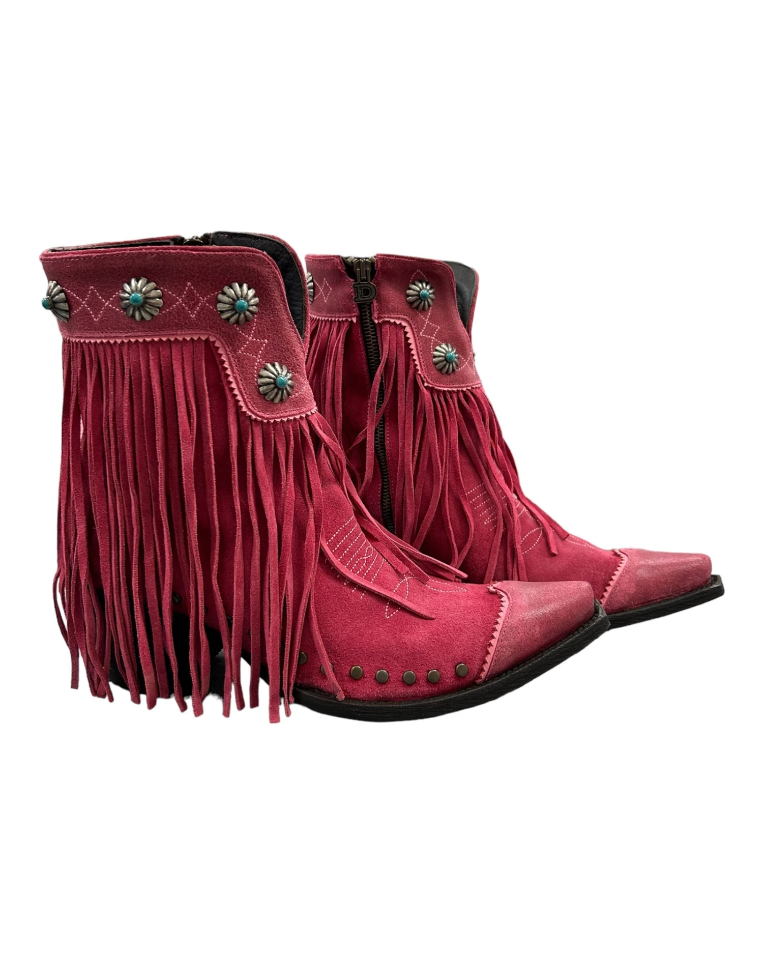 Experience elegance and style with the Old Gringo Rio Ranch 7″ Suede Boot. Made with master craftsmanship, this boot features pink suede with fringe, stud, and concho accents to add a touch of sophistication to any outfit. Stand out from the crowd with these expertly designed boots.