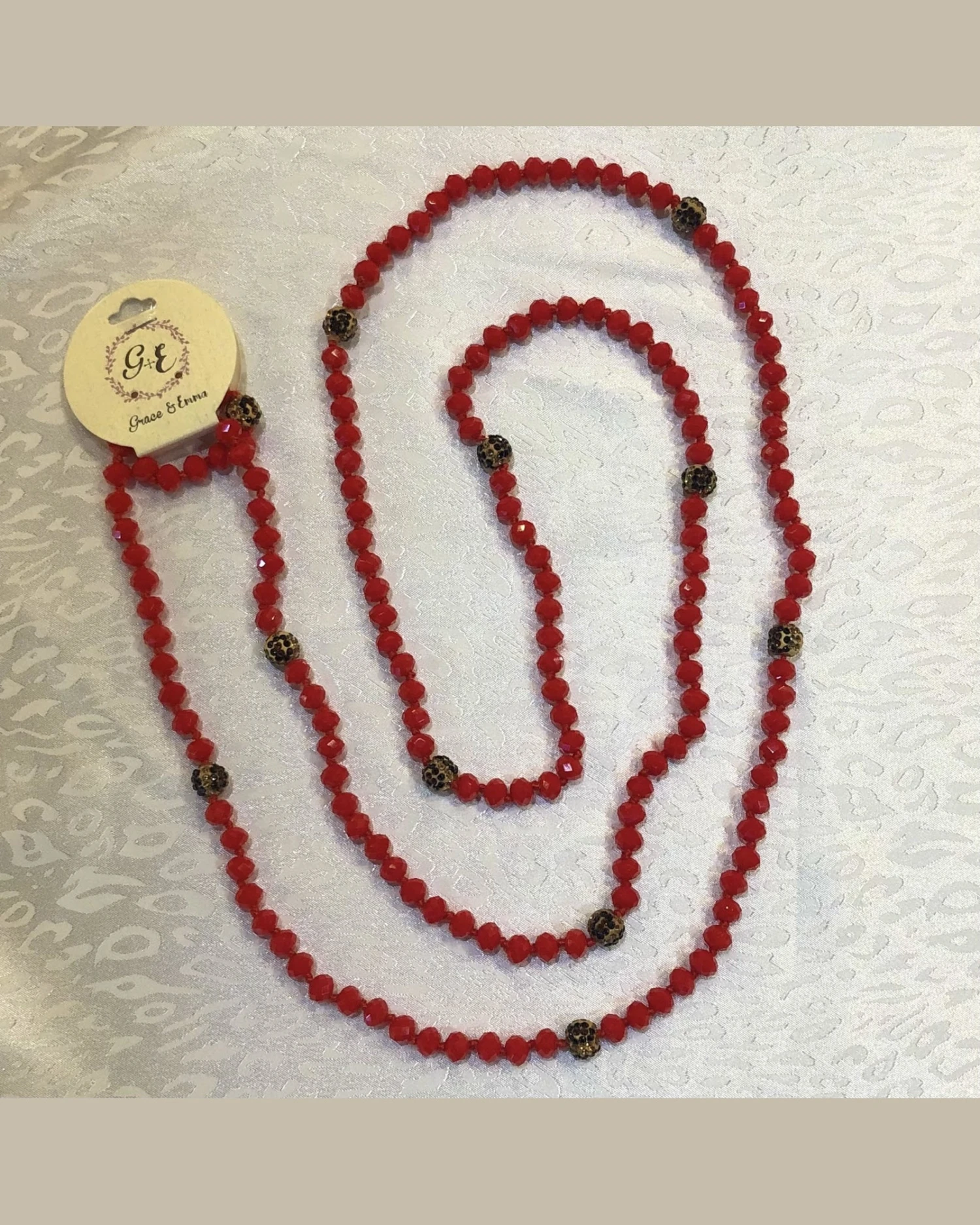 You’ll love this Red & Leopard Beaded necklace. It’s great for an every day outfit or with your favorite holiday attire. Pair with a black or red green sweater for a festive look.