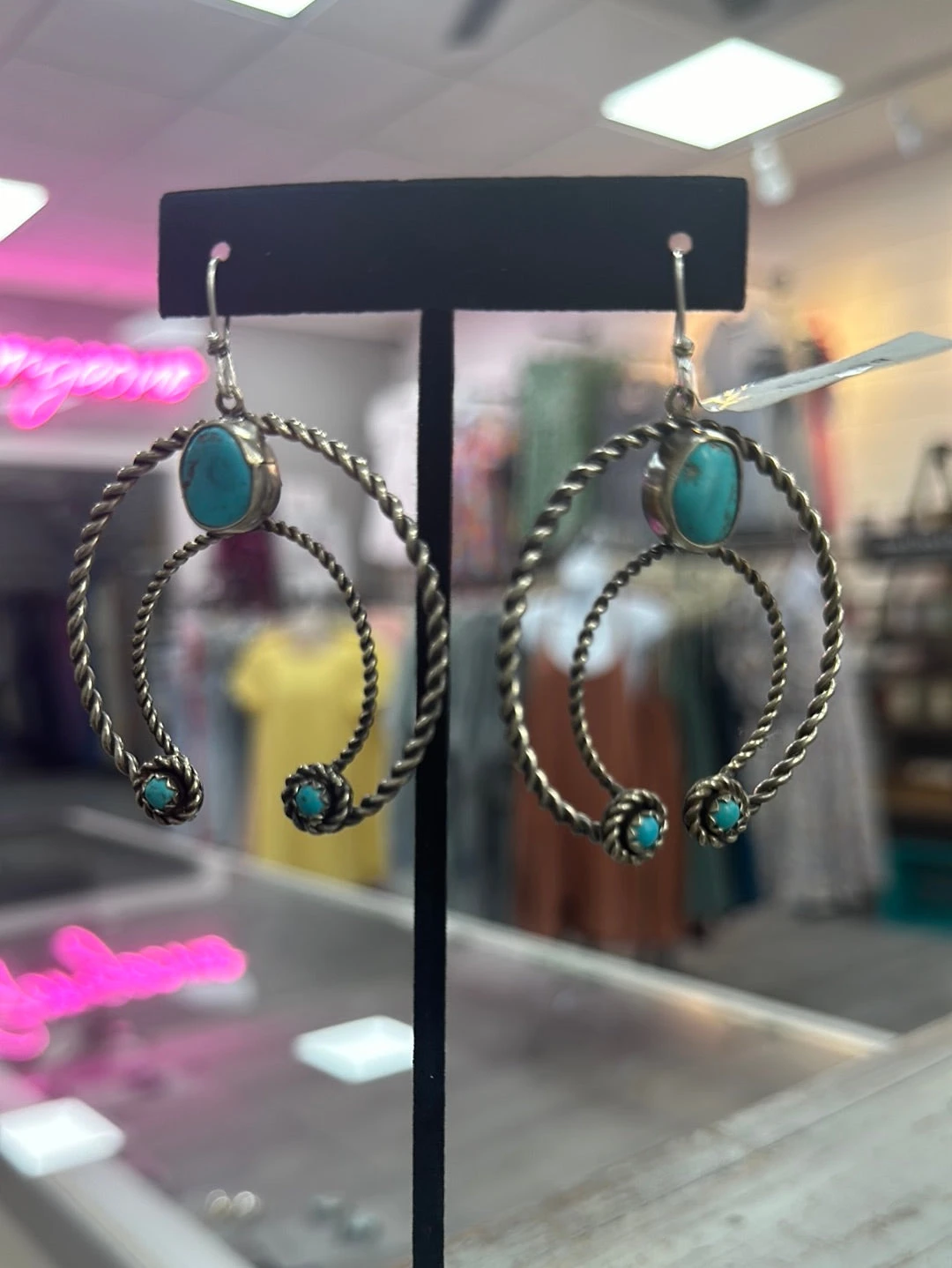 Introducing our Rope Nanja w Turquoise Earrings. These earrings feature a unique rope nanja design with stunning turquoise detailing. With a secure fish hook closure, these earrings are both fashionable and comfortable to wear. Perfect for adding a touch of elegance to any outfit.