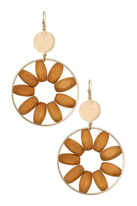 Round Framed Wood Earrings