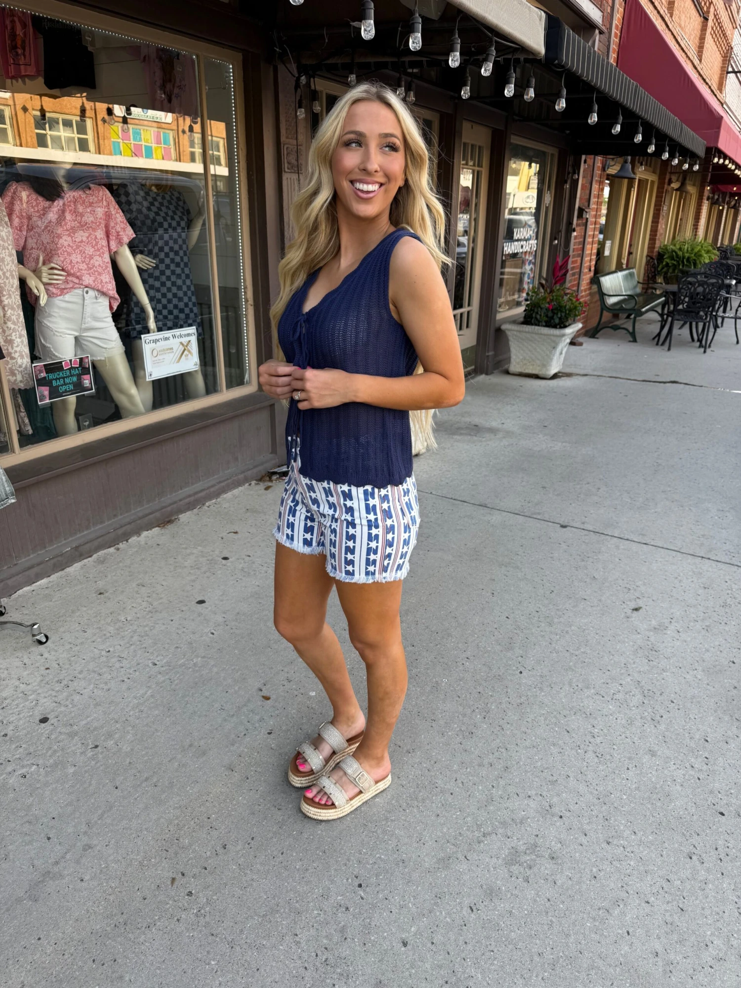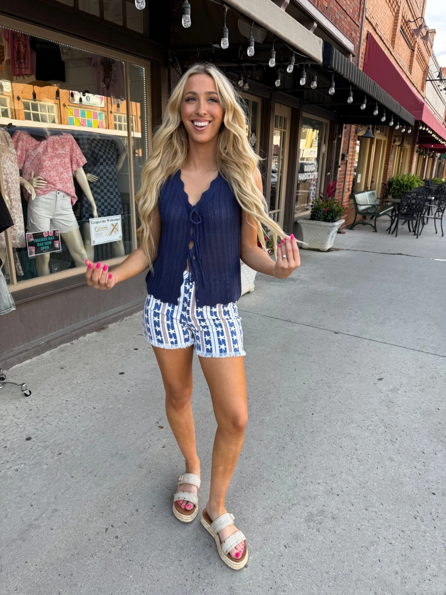 Expertly crafted, this Scallop Vest features a front tie for a stylish and adjustable fit. The sweater vest design adds comfort and depth to any outfit. Elevate your wardrobe with this versatile and fashionable piece.